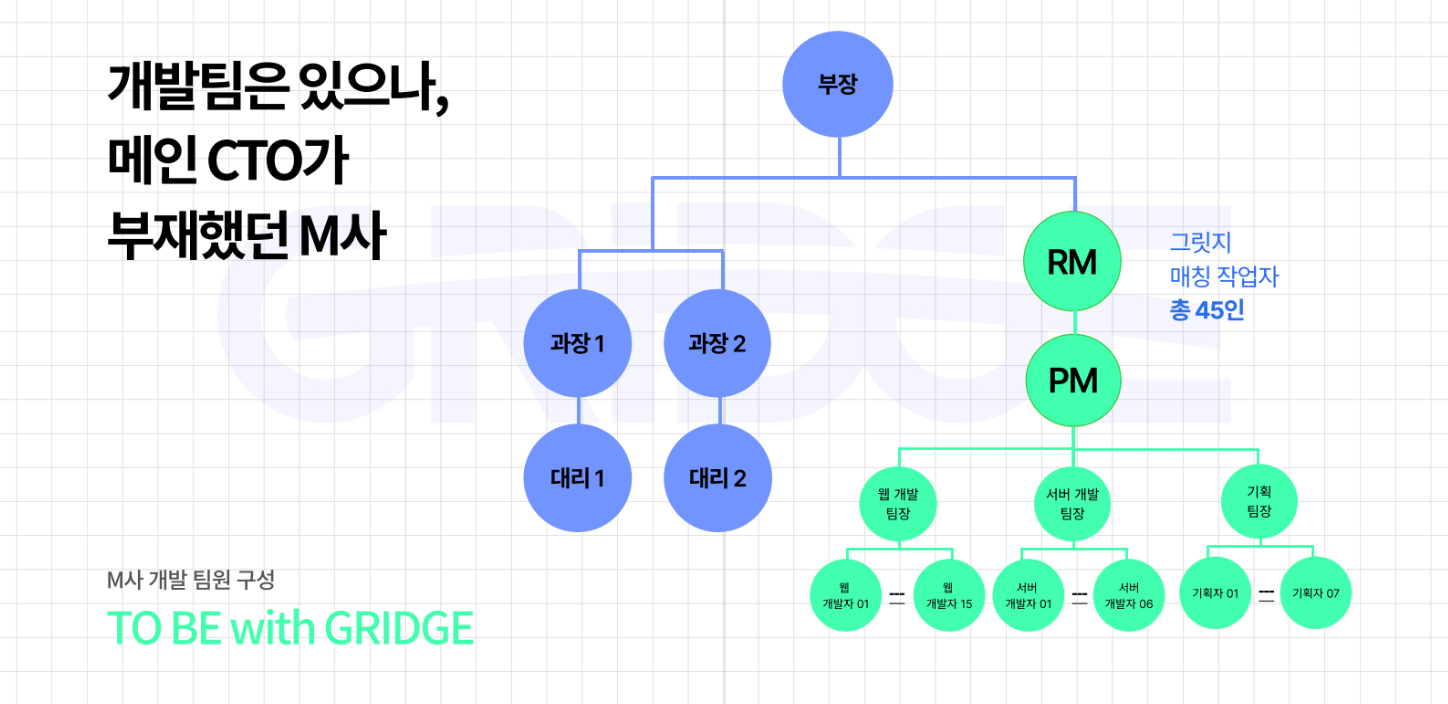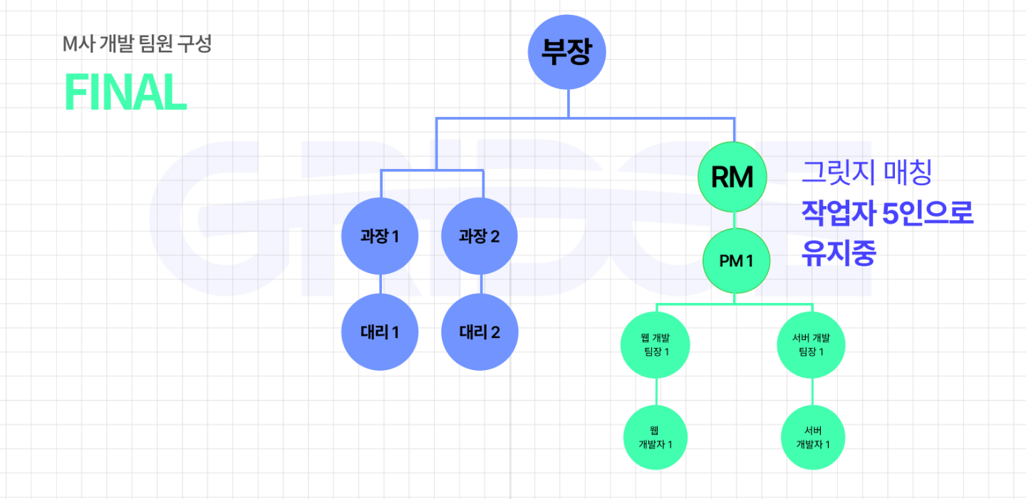 의뢰 이후 그릿지는 M사의 개발팀원을 새롭게 구성했어요.